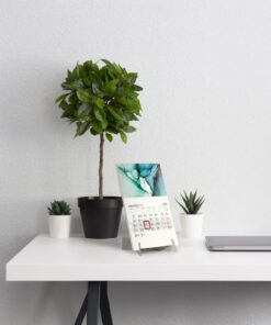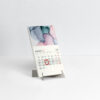 Galda kalendārs EKO SHELF PREMIUM ir viens no jaunākajiem EKO klases modeļiem. Tā pamatne ir veidota no 2,4 mm bieza pelēkā eko kartona, kalendāra lapas izgatavotas no bezhlora krēmkrāsas dabai draudzīga papīra un pats iepakojums no vismaz 280g bieza dizaina papīra, kas tiek piemeklēts atbilstoši korporatīvajām vadlīnijām. Uz kalendāra iepakojuma uzdrukāsim sietspiedē Jūsu uzņēmuma logo, simbolu vai jebkuru citu grafisko elementu. Kalendāra pamatne ir ērti saliekama kopā kā statīvs uz kura turas kalendāra lapas, un tikpat viegli izjaucama. Kalendāra lapām ir pilnībā individuāli veidots dizains. Tajā ievietosim tieši Tavam uzņēmuma tēlam atbilstošus attēlus, kontaktinformāciju, logotipu un krāsas.