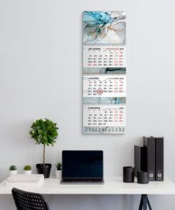 Sienas kalendārs TRINITY CEO FLIP POPULAR uz citu kalendāru fona izceļas ar personalizētu UV lakas pārklājumu un greznu fragmentāru lakojumu, ar kura palīdzību pievēršam īpašu uzmanību jūsu uzņēmuma logo vai citām dizainā iekļautajām detaļām pēc Jūsu izvēles. Kalendāram ir trīs mēnešu pārskats un četras papildlapas ar īpaši jums veidotu pamatnes dizainu – varēsi mainīt izskatu katru ceturksni. Kalendāram ir trīs spirāļu sistēma, tāpēc tas ir ļoti kompakts un ērti nosūtāms pa pastu vai dāvināms darbiniekiem un sadarbības partneriem.