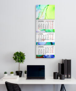 Sienas kalendāriem TRINITY CEO STRONG PREMIUM ir plašs trīs mēnešu pārskats. Vienlaicīgi ir redzams iepriekšējais, tekošais un nākamais mēnesis. Kalendāra pamatne ir izgatavota no ļoti bieza un cieta kartona, kas izcili kalpos visa gada garumā. Tai izstrādājam individuālu dizainu, kas vislabākajā veidā atainos jūsu uzņēmumu. Pamatne tiek apstrādāta arī ar matētu laminātu un greznu glancēto fragmentāro UV laku. Ar tās palīdzību izceļam būtiskākās dizaina detaļas. Šis ir viens no retajiem modeļiem, kuram veidojam personalizētu dizainu arī kalendāra lapu blokam. Mainām krāsas, fontus, pievienojam vai noņemam vārda dienas u.c. elementus pēc jūsu izvēles. Kalendāram ir divu spirāļu sistēma, tāpēc salocītā veidā tas ir ļoti kompakts un ērts dāvināšanai.
