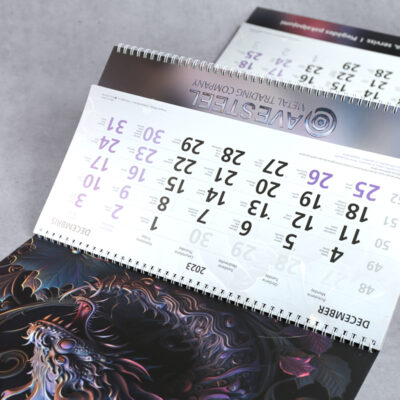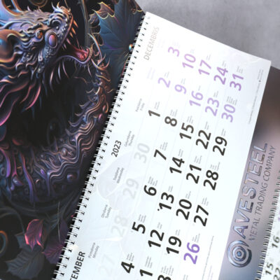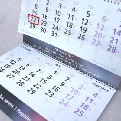 AVE STEEL ir metāla tirdzniecības uzņēmums, dibināts 2011. gadā, kuru vada komanda ar plašu pieredzi tirdzniecībā Baltijas valstīs jau kopš 1999. gada. enivo klientam izstrādāja pilnībā individuālu trīsdaļīgo sienas kalendāru, grafisko dizainu fokusējot uz 2024. gada zodiaka zīmi un klienta pamatnodarbošanos. Kā dizaina odziņa tika izmantota fragmentārā UV laka.