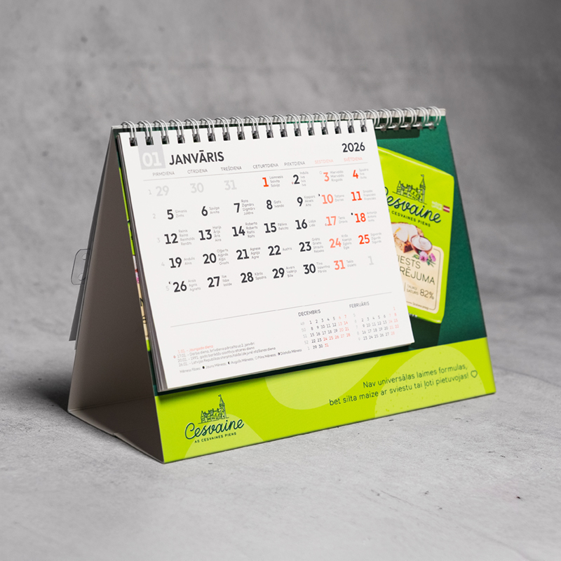 Īsi un kodolīgi – “garšīgs un gaumīgs” galda kalendārs Cesvaines pienam.