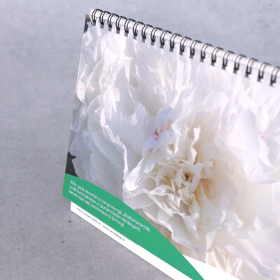 enivo klientam izstrādāja gan jubilejas logotipu, gan tam atbilstošu galda kalendāra dizainu zaļajos dzīvības toņos. Kalendāram arī papildu tika izveidota individuāla, zaļas krāsas dizaina papīra kastīte, lai to varētu eleganti pasniegt saņēmējam.