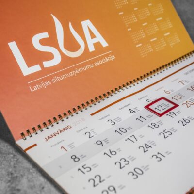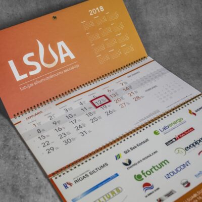 Latvijas siltumuzņēmumu asociācijas galvenās kalendāra prasības ir – informācija, efektivitāte un kompaktums. Vadoties pēc šīm prasībām, tika izveidots pilnībā individuāls kalendārs, apvienojot visas šīs lietas. Kalendārs ir izmēros kompakts, bet tajā pat laikā ar lieliem un uzskatāmiem datumiem. Kalendārā ir dizainiski eleganti, bet tajā pat laikā efektīvi attēlots liels informācijas apjoms. Veiksmīgs risinājums, ja nepieciešams kompakts un efektīvs kalendārs.