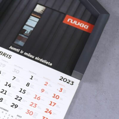 Ruukki piegādā tērauda būvniecības izstrādājumus un pakalpojumus jumtiem un sienām ilgtspējīgu ēku celtniecībai. enivo izstrādāja unikālu sienas kalendāra konstrukcijas risinājumu, kas maksimāli nodod klienta vēstījumu, kā arī nodrošināja šī tehniski sarežģītā sienas kalendāru izgatavošanu.
