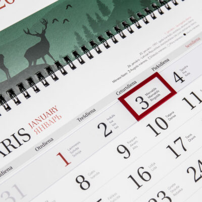 Šie sienas kalendāri ir īpaši veidoti atbilstoši klienta vēlmēm. Šis nav standarta TRINITY CEO modelis. Tam ir speciāli pagarināta augšējā pamatnes daļa un īpaši veidots izcirtums, lai pielāgotu formu kalendāra dizainam. Dizains ir veidots attēlojot SIA “LDZ CARGO” nodarbošanos, kas ir kravas pārvadājumi ar vilcienu. Tāpēc ir attēlots pats vilciens un apkārtējā vide, kurā tas ik dienu atrodas. Dizainā ir izmantota sarkana folija, kas īpaši izceļ uzņēmuma logotipā esošo sarkano toni. Arī kalendāra lapām ir veidots individuāls dizains, izmantojot uzņēmuma burtveidolus un toņus pēc tā izvēles. Šis, viennozīmīgi, bijis ekskluzīvs un ļoti veiksmīgs projekts – paldies SIA “LDZ CARGO” vadībai par drosmi uzticēt mums izgatavot tik oriģinālu kalendāru.