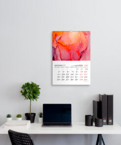 Настенный календарь A2 PREMIUM – самая эксклюзивная модель в серии A2. Он сделан из отобранных материалов – очень плотных страниц календаря и дополнительно укреплен плотной картонной основой. В этой моделе мы разрабатываем не только уникальный дизайн для календарных страниц (включая корпоративные шрифты и цвета вашей компании), но и дизайн эксклюзивного фрагментарного УФ-лака. Он выделит наиболее важные детали календаря, такие как логотип, девиз компании или графический элемент.